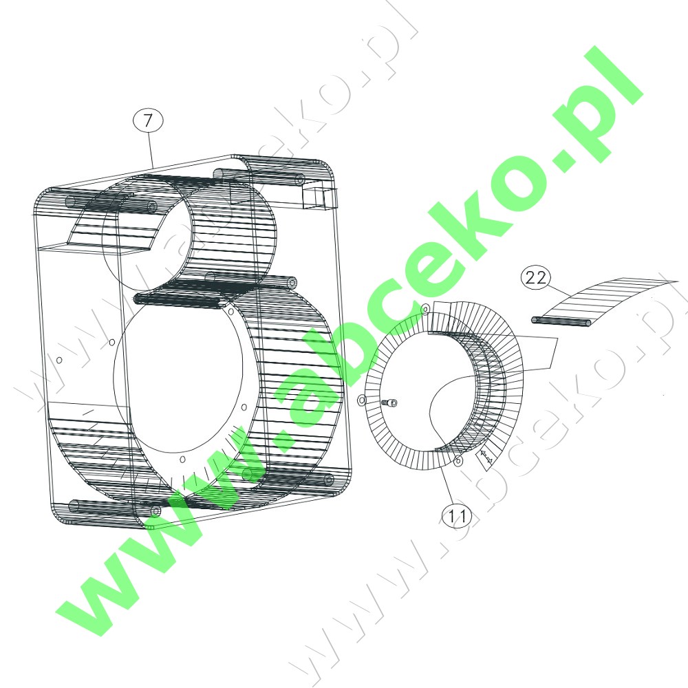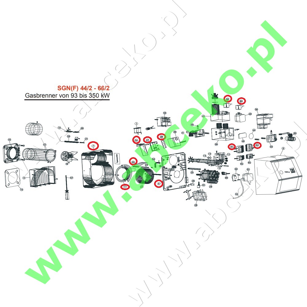Korpus z klapą powietrza oraz wlotem powietrzą palnika SL 44/2-66/2 oraz SGN(F) 44/2 - 66/2. Z rozebranego palnika posiadamy również inne części zaznaczone na zdjęciu.
