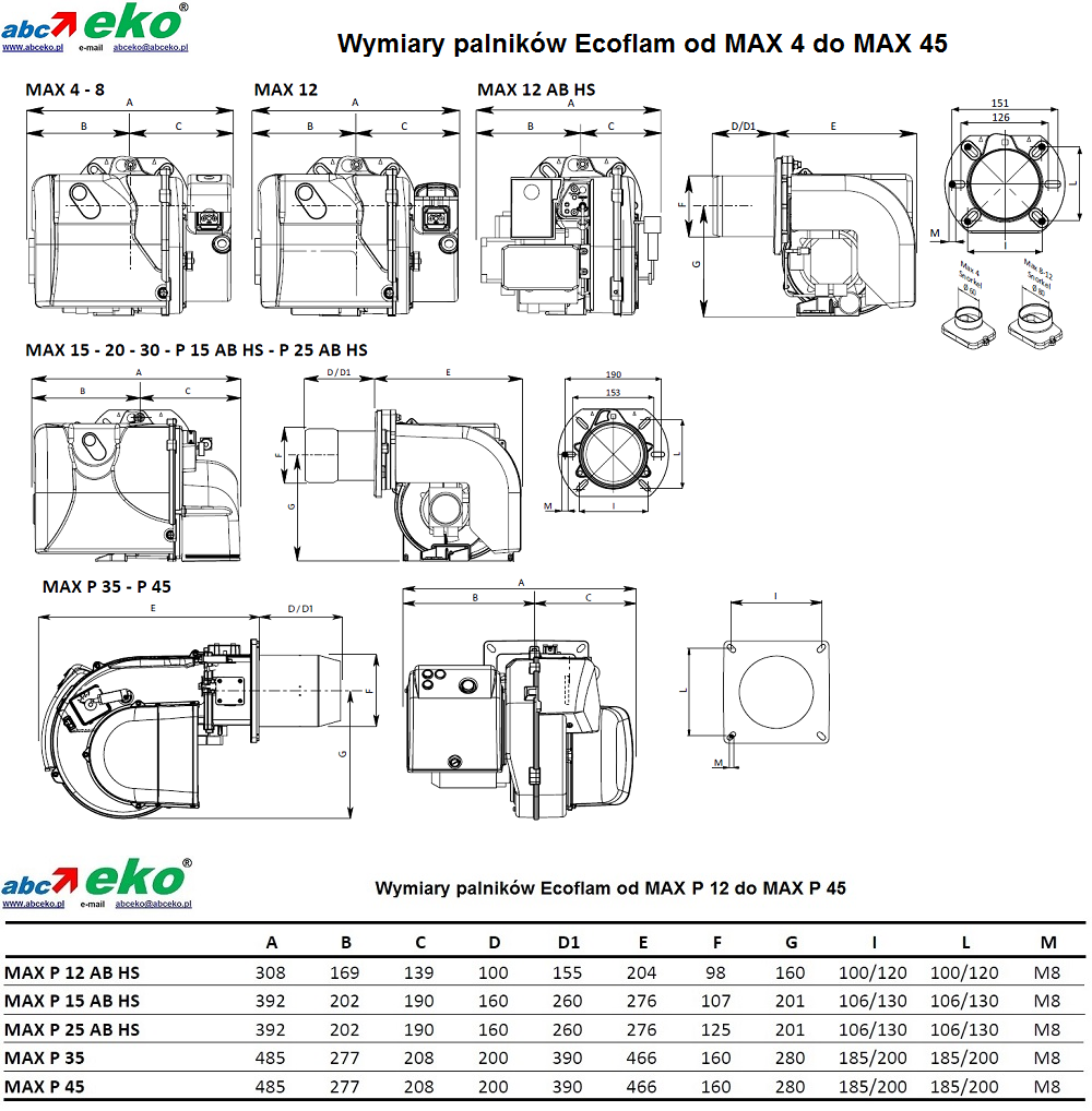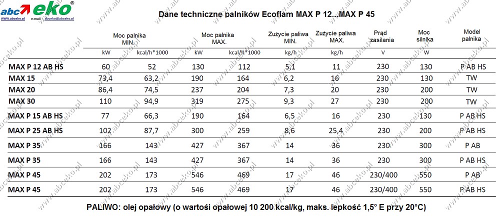 W pełni automatyczne jednostopniowe palniki na olej opałowy serii Ecoflam Max... jednostopniowe palniki na olej opałowy serii Max 12 AB HS od 60 kW do MAX 45 AB HS TW - 546 kW . Palniki jednostopniowe o czystym, ekonomicznym i cichym spalaniu. Korpus palnika odlany jest z lekkiego stopu aluminium a obudowa wykonana z tworzywa sztucznego. Kompaktowe wymiary w połączeniu z niskim poziomem hałasu sprawiają że są to nowoczesne i ekonomiczne palniki o zaawansowanej technologii. Duży nowoczesny wentylator nowej generacji (HPV) pozwala na użycie palnika na kotłach z wysokim ciśnieniem wstecznym w komorze spalania. Aby uprościć konserwację, palnik ma pojedynczą śrubę mocującą, na której można go zawiesić za pomocą specjalnego haka w różnych pozycjach przestrzennych. Ustawienie elektrod jest regulowane bez demontażu rury płomieniowej.