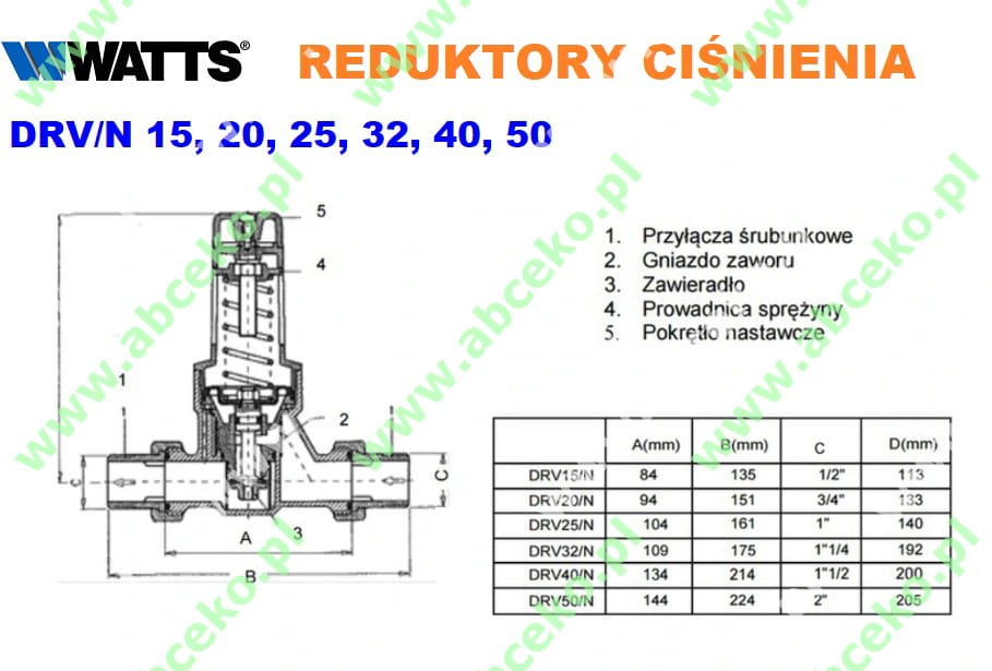 Reduktory ciśnienia WATTS DRV DN 25 N