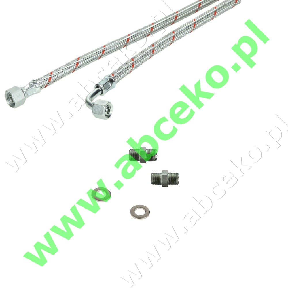 Zestaw przewodów paliwa, kątowe w oplocie ze stali nierdzewnej plus 2szt nypli 1/4'' x 1/4'' plus 2szt podkładek 1/4''